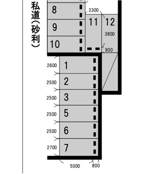 ※区画1:全長5,800mm×全幅2,600mm、区画2〜6:全長5,800mm×全幅2,500mm、区画7:全長5,800mm×全幅2,700mm