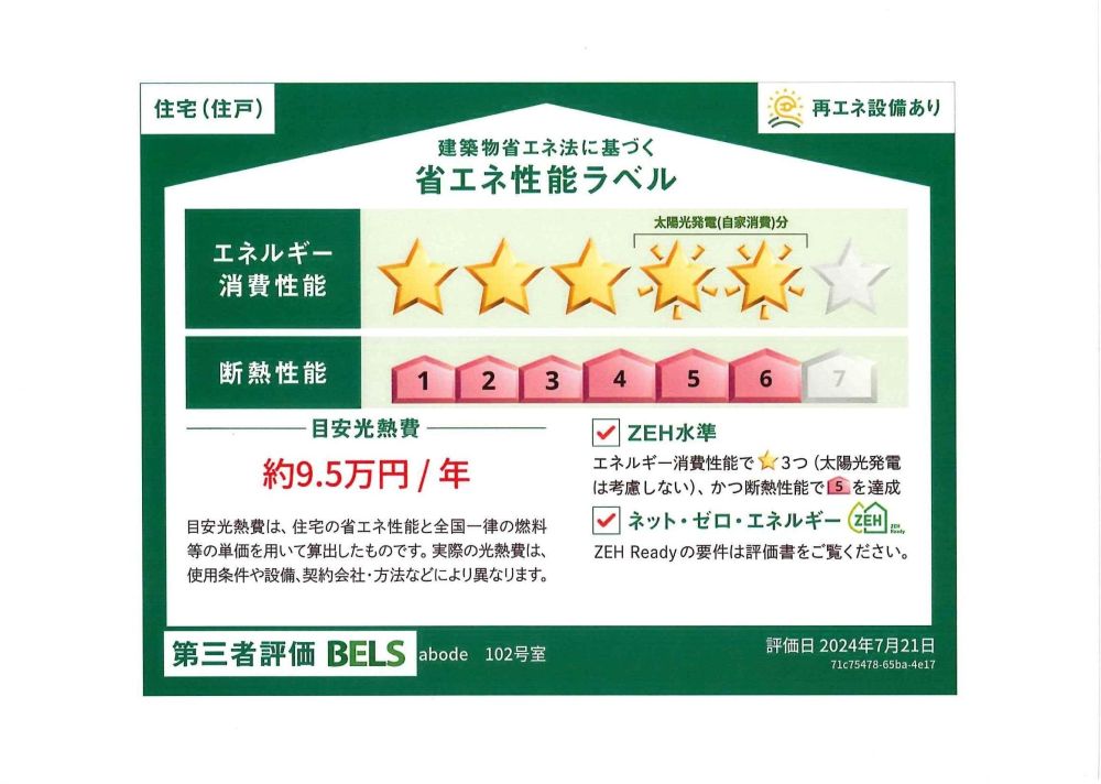 ※省エネルギー性能表示(BELS)におけるZEH−Mの取得評価物件(2024年7月21日に認証取得)