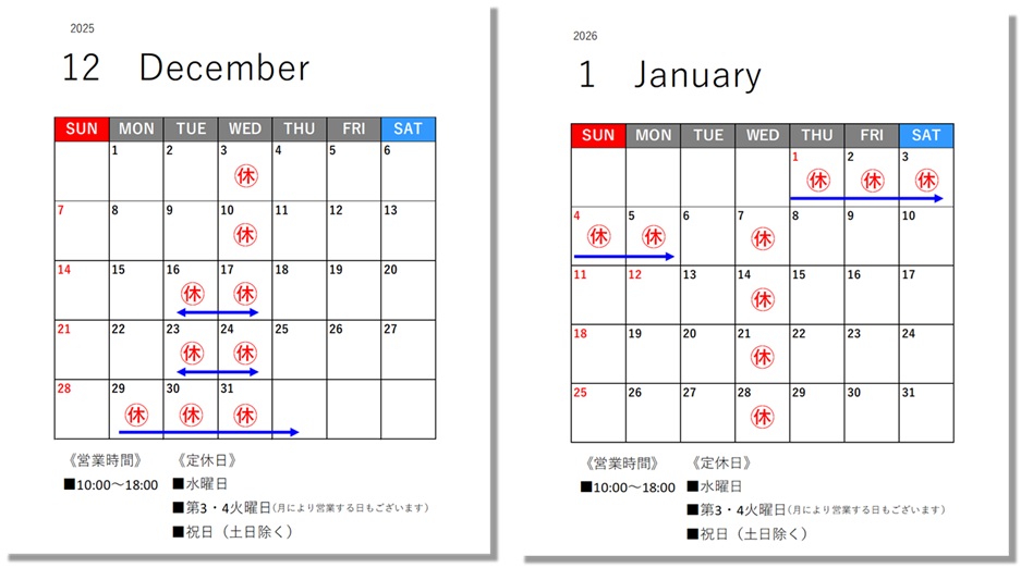 ◇年末年始 休業◇2025/12/28(日)~2026/1/5(月)