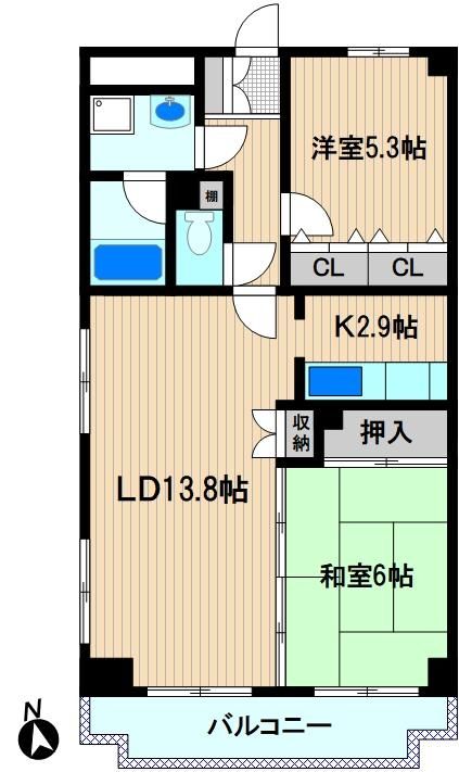 | 築年月 | 1997年4月 | 間取り | 2LDK( LD13.8畳(4階)/K2.9畳(4階)/洋室5.3畳(4階)/和室6畳(4階) ) | 専有面積 | 61.89m2 |